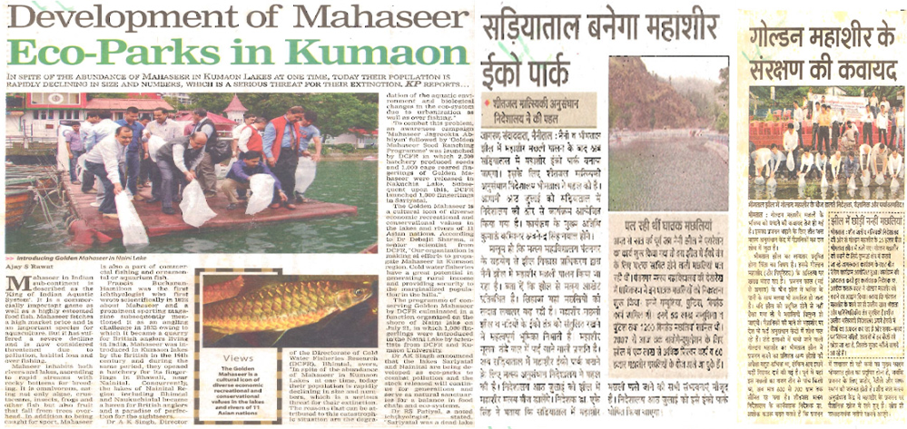 साथ ही, DCFR द्वारा hatchery-उत्पन्न महसीर अंगुलिकाओं का उपयोग कर स्टॉक संवर्धन कार्यक्रम तथा बीज उत्पादन, हैचरी प्रबंधन और पुनर्वास हेतु प्रशिक्षण कार्यक्रम आयोजित किए गए हैं।